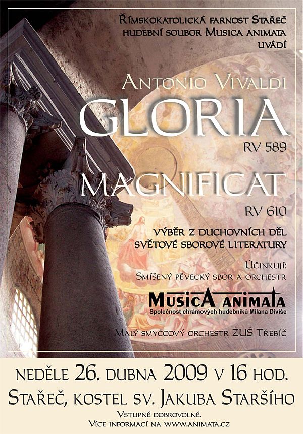 Třebíčský soubor Musica animata zazpívá v neděli 26. dubna 2009 v 16 hod. v kostele sv. Jakuba Staršího ve Stařči Kantáty Antonia Vivaldiho pro velký smíšený sbor, sóla a orchestr. Účinkuje také Malý smyčcový orchestr ZUŠ Třebíč.