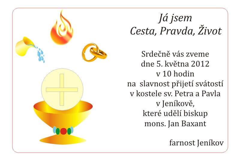 jeníkovském kostele sv. Petra a Pavla od 10 hodin . Křtít a biřmovat nás bude litoměřický biskup Mons. Jan Baxant. Přijďte se s námi potěšit z těchto vzácných okamžiků.