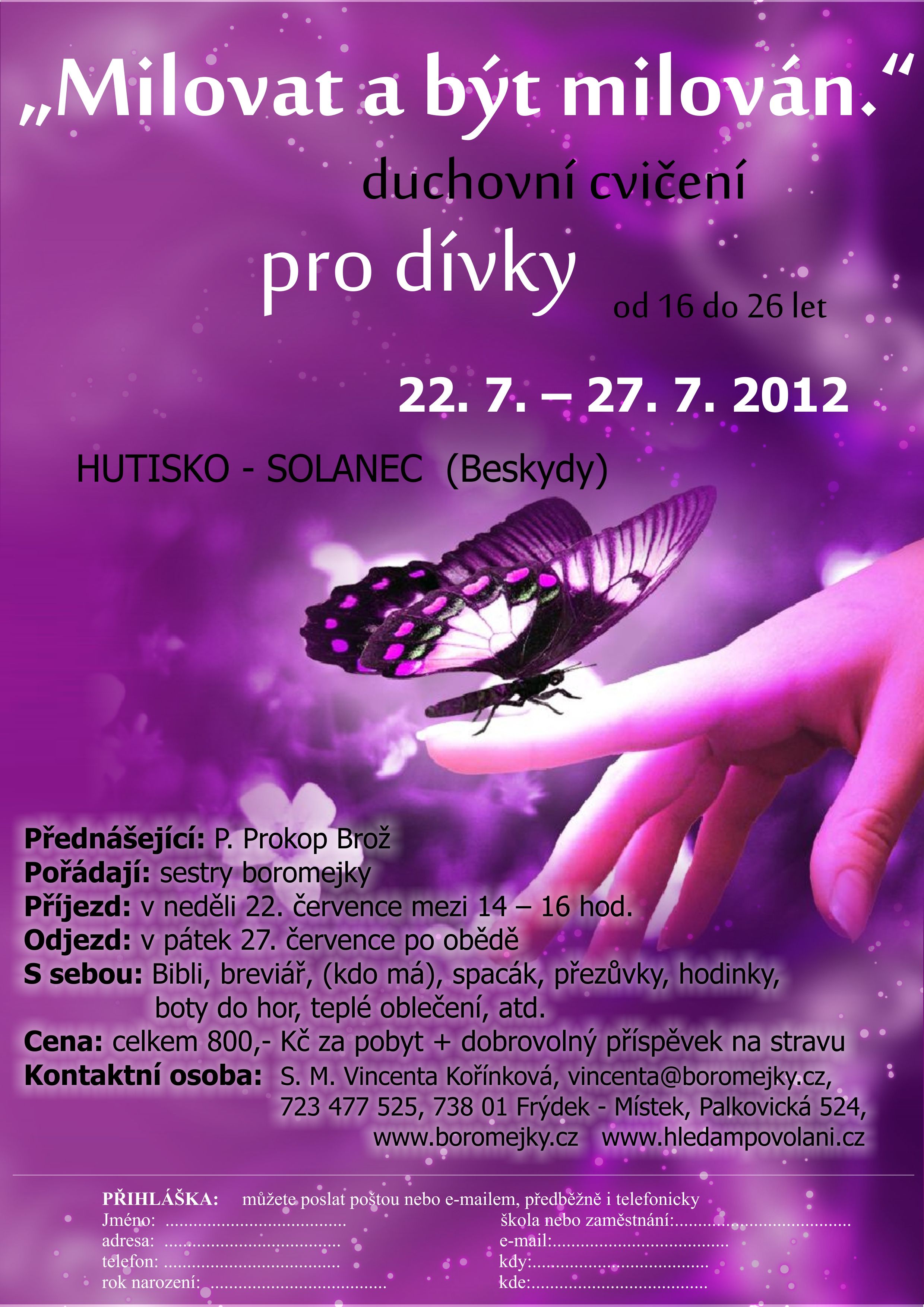 22.- 27. 7. 2012. Kdo touží po tichu, setkání s Bohem a krásné přírodě ať využije třeba této příležitosti.
