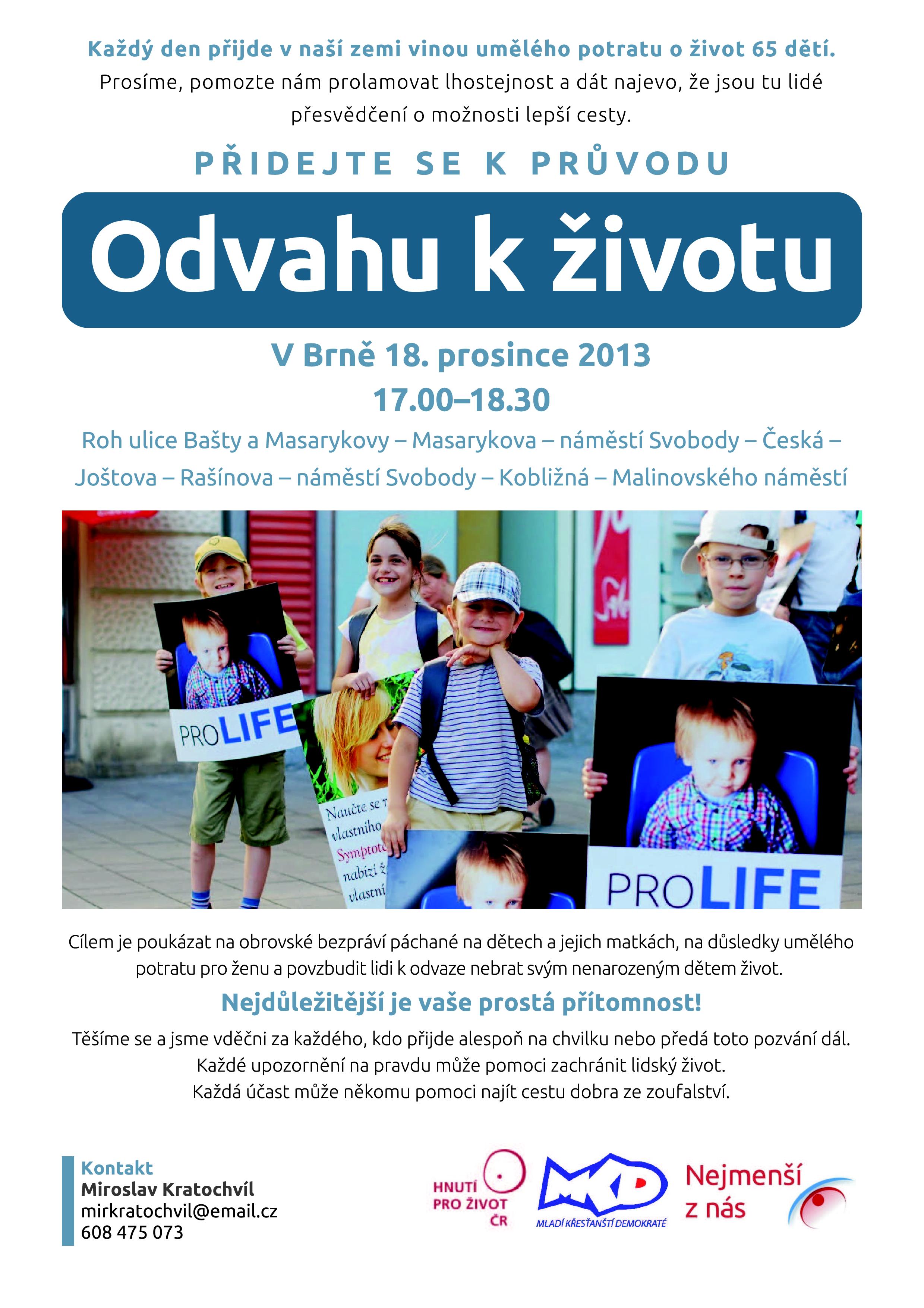 18. 12. 2013 se od 17 h v Brně uskuteční další ze série pochodů pro život „Odvahu k životu“. Všichni jsou srdečně zváni.