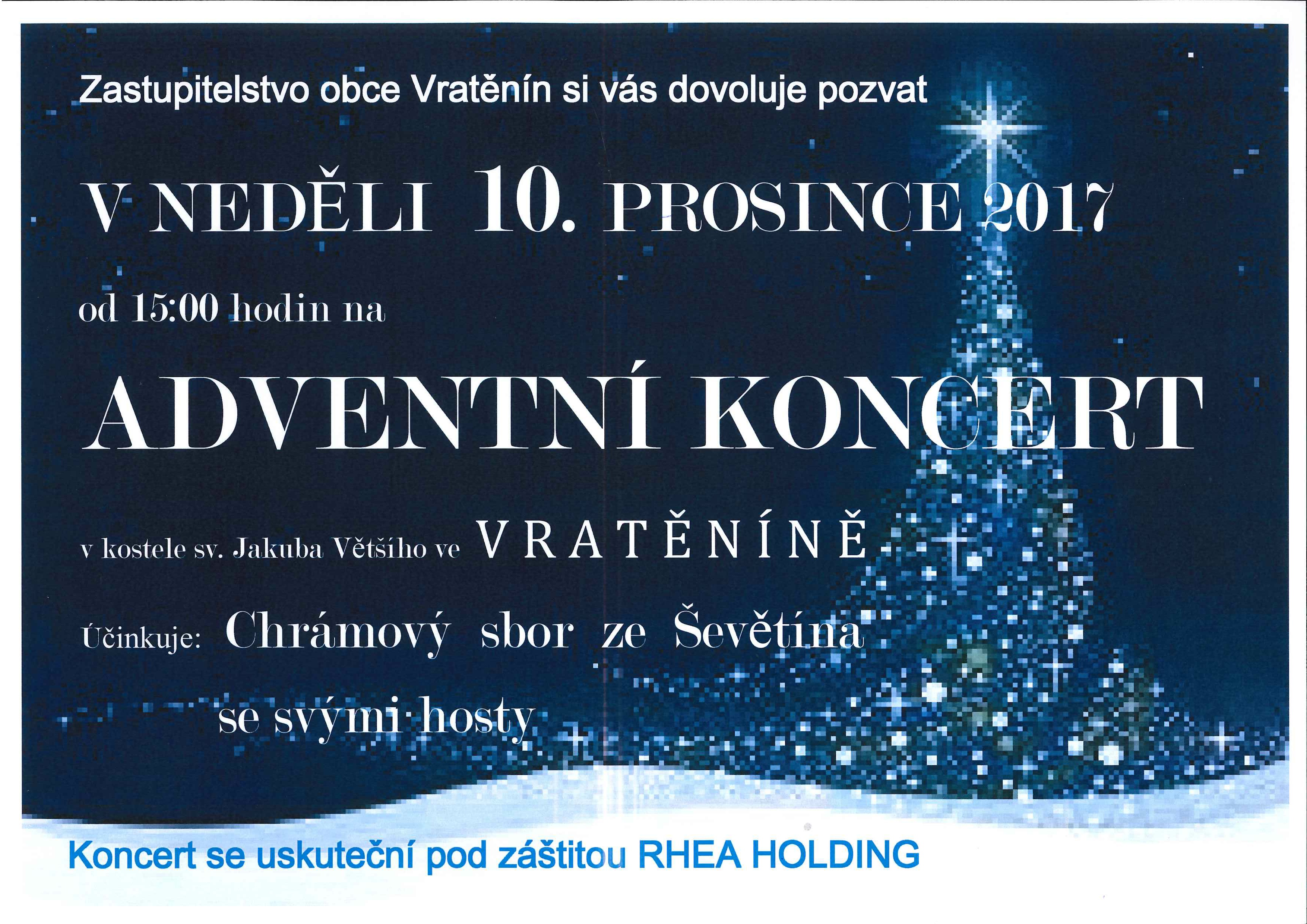 Zastupitelstvo obce Vratěnín srdečně zve na adventní koncert, který bude 10. 12. od 15 h v kostele sv. Jakuba Většího ve Vratěníně.