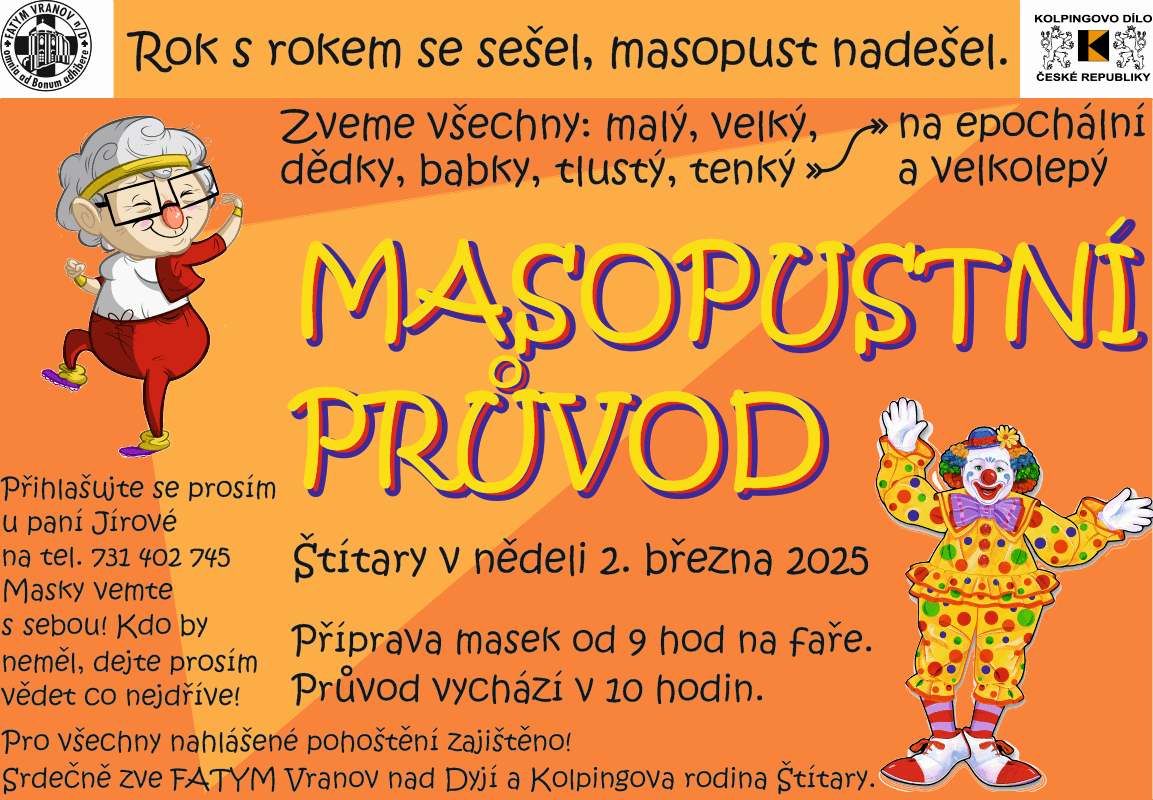 2. 3. 2025 od 10 h jste všichni srdečně zváni na masopustní průvod do Štítar.