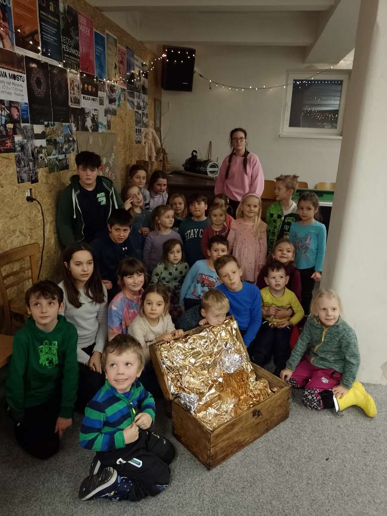 Přes tři desítky dětí při ní plnily úkoly na stanovištích rozmístěných po obci, v nichž si formou zážitků osvojovaly znalosti o 7 dnech, ve kterých Bůh tvořil svět: 1. den: Stvoření světla a tmy (den a noc).