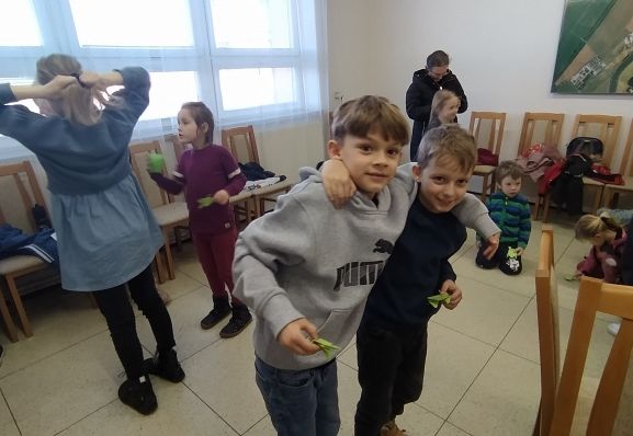 Dětí přišlo hodně a bylo vskutku živo. Společně jsme si vyrobili papírovou žabičku, která dokonce umí skákat. Z žabičky si můžeme vzít příklad i do duchovního života. Žabička skáče jen dopředu. A tak i my se máme posouvat vždy jen směrem k Bohu, i kdyby to měly být jen malé skoky - krůčky dopředu.