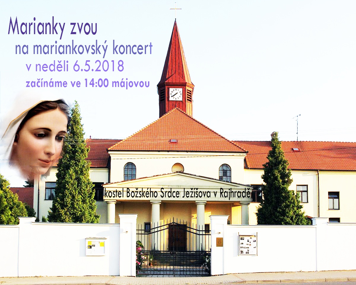 V neděli 6. 5. zvou marianky do kostela Božského Srdce Ježíšova v Rajhradě, kde zazpívají svoje písničky. Začíná se ve 14 h májovou.