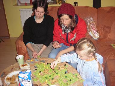 Ve čtvrtek jsme byli pozváni do Blížkovic do oratoře a také ke Křížům, s nimiž jsme strávili odpoledne. Nejprve jsme šli do kostela, do oratoře, kde jsme si zahráli stolní fotbal, ping-pong a šipky. Naše dovádění bylo nejspíš únosné, protože kostel stále stojí. Potom jsme z kostela přešli ke Křížům domů, kde jsme dostali čaj a buchty a pokračovali jsme v dalších hrách. Nejprve jsme si zahráli námi oblíbený Bang. Padouši zvítězili už v druhém kole, když zabili šerifa. No, proti 4 padouchům, kteří se opravdu snažili a karty jim zrovna vyšly, neměl šerif nejmenší šanci. Tím byla hra rychle u konce. Potom jsme si ještě zahráli Carcassonne a po něm jsme se museli rozloučit, protože se společné odpoledne pomalu dostalo k závěru.