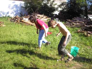 Hodně fyzicky náročná disciplína, zda chlapci nebo děvčata donesou rychleji 50 kusů dřeva.