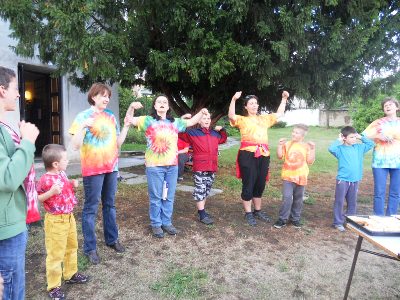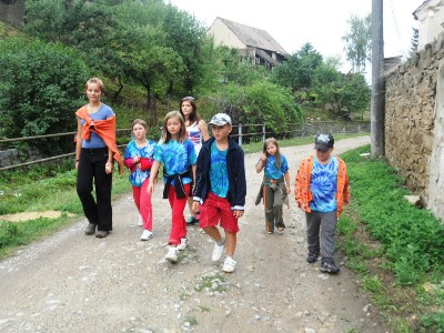 Probudili jsme se do deštivého rána, vlastně celého dopoledne. K naší radosti jsme měli budíček posunutý o půl hodiny později a bez rozcvičení jsme šli na mši svatou, která byla nakonec kvůli dešti v kostele. Potom jsme měli sladkou snídani. Po chvilce na poklizení chatiček jsme se sešli znovu u stolů, kde jsme se dozvěděli o dalším programu – jak přijel černě oděný rytíř. Děti si měly obléci brnění – pláštěnku a vyrazit na svém oři po zahradě a zkoušet svoji vnímavost a zapamatování si zvířátek, které na cestě viděly. Terén jízdy byl v mokru a bahnu dost náročný. Déšť nepřestal, tak jsme se přesunuli do klubovny, kde děti zkoušeli koříka pozornosti ve „stavění soch“. Po obědě a poledním klidu jsme vyrazili k místním obyvatelům a zvali jsme je na Pěší pouť na Velehrad. Potom jsme se rozdělili do aut a vyrazili do Olbramkostela. Antiošáci pro děti nachystali olympiádu a děti se rozutekly po farní zahradě. Potom jsme šli na dětské hřiště, kde si každý našel svoji atrakci. Na sedmou hodinu jsme se vrátili do kostela, kde byl koncert MUSICA DA CHIESA. Po navrácení do tábora jsme se ještě společně pomodlili a mohli jít spát.