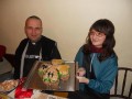 Po mši svaté Maruška Drtinová Otci Markovi za všechny přítomné i nepřítomné moc pěkně pogratulovala a na závěr dodala, ať má s námi P. Marek Dunda trpělivost...(možná tu Boží trpělivost):). Spolu s Eliškou Ramachovou mu předala přání a šampaňské. Od katechetky Markéty obdržel hru: o Cyrilu a Metoději. Hraje je určena pro děti od 9 let! Slíbil, že si ji někdy s námi zahraje. Proto jsme se daného nápadu chopili a ihned hru naplánovali na neděli 13. ledna na faře ve Štítarech, kde „tajně“ oslavíme narozeniny Otce Marka a 16. Narozeniny Elišky Ramachové.