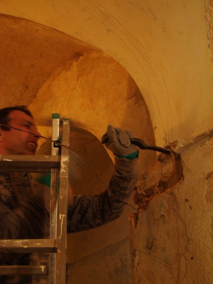 Společně něco málo posnídáme, řekneme si, co je třeba udělat a každý z nás se pouští do práce. Na mě zůstalo vaření a Jarek s Jirkou se pouští do vysekávání zdi, kde by v budoucnu měla vést nová elektrika. Snažila jsem se jim to co nejvíce ulehčit a tak jsem na to v Brně půjčila i stroj – drážkovač, který by jim měl pomoct. Po chvíli ale chlapi zjišťují, že je to zcela na houby a tudíž se musí sekat ručně. Jsem na sebe naštvaná, že jsem neschopná a snažím se hledat řešení, protože vím, že pokud se to bude sekat ručně, tak že se to nestihne tak, jak potřebuji. Místo vaření hledám na internetu půjčovnu, kde by nám stroj půjčili. Po chvíli nacházím půjčovnu v Teplicích. Jsou tam sice jenom ve všední den, ale zkouším volat na mobil, který zvedl pán a řekl mi, že drážkovač mají a cena za půjčení není ani tak velká. Problém ovšem je v záloze, ta činní skoro 15 000,- Kč je sice vratná, ale kde je tak narychlo sehnat. Domlouvám se, zda bych tam nemohla nechat něco jiného, čím bych se zaručila. Chvíli pán nic neříká, ale když slyší moji neodbytnost, tak říká, abych přijela, že se domluvíme. Už toto považuji za první zázrak dnešního dne. Vždyť mi klidně mohl říct, co chci, když nemám peníze, tak ať neotravuji.