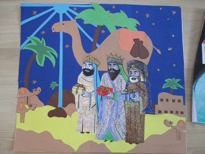 Z děvčat se stala porota, která před sebou měla nelehký úkol: vybrat nejkrásnější výtvarné práce. Holky si v každé místnosti pozorně prohlédly všechny obrázky, na nichž byli ztvárněni různými způsoby vždy tři králové. Na koláž bylo použito hodně materiálů - noviny, letáky, látky, vlna, mašle, alobal, keramická hlína, seno, barevná rýže, korálky, knoflíky, špejle, koření, písek, třpytky, barevné papíry, vata,...