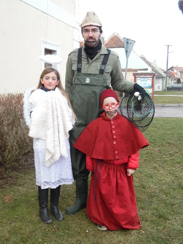 Letos se průvodu zúčastnilo celkem 20 maškar, dokonce nás poctili svou návštěvou i nebeští občané: anděl, svatý apoštol Petr a pan biskup - to jsme si mysleli, ale později jsem si uvědomila, že to byl pan kardinál...asi Karel Boromejský.