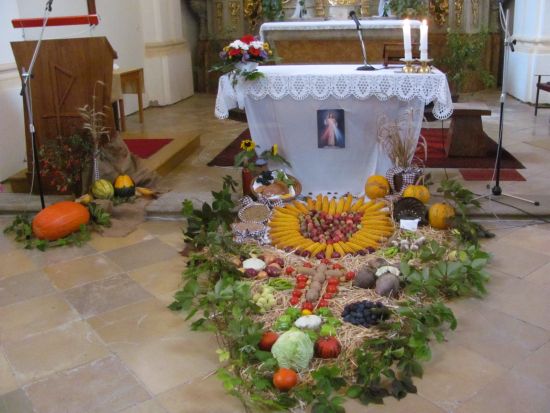 Poděkování za úrodu Vratěnín Nedělní mše svatá v kostele ve Vratěníně byla slavena na poděkování Pánu Bohu za letošní úrodu.