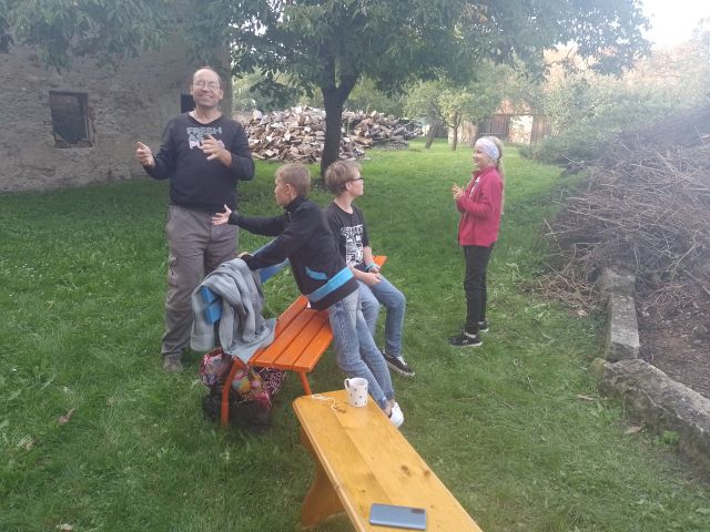 Bývá zvykem na začátku i na konci školního roku po dětské mši svaté zapálit táborák na faře, opéct si s dětmi buřtíky a zahrát si nějaké hry. Jako to často na farském dvoře bývá, ze všech her to při výběru u dětí vyhrála schovávaná. Farská zahrada totiž skýtá mnoho zajímavých zákoutí.