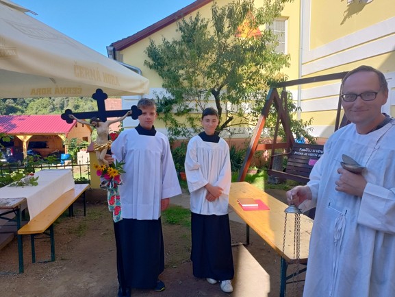 Slavnostní dopoledne bylo zakončeno pohoštěním na farním dvoře pro všechny, kteří chtěli přijít.