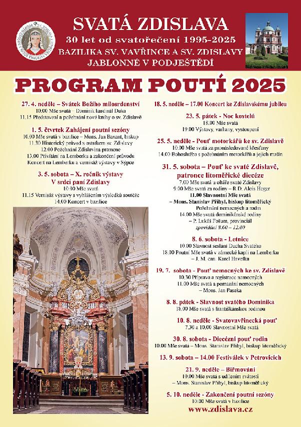 Přinášíme program poutí v bazilice sv. Vavřince a sv. Zdislavy v Jablonné v Podještědí. Všichni jste srdečně zváni. Program ke stažení zde! Download...
